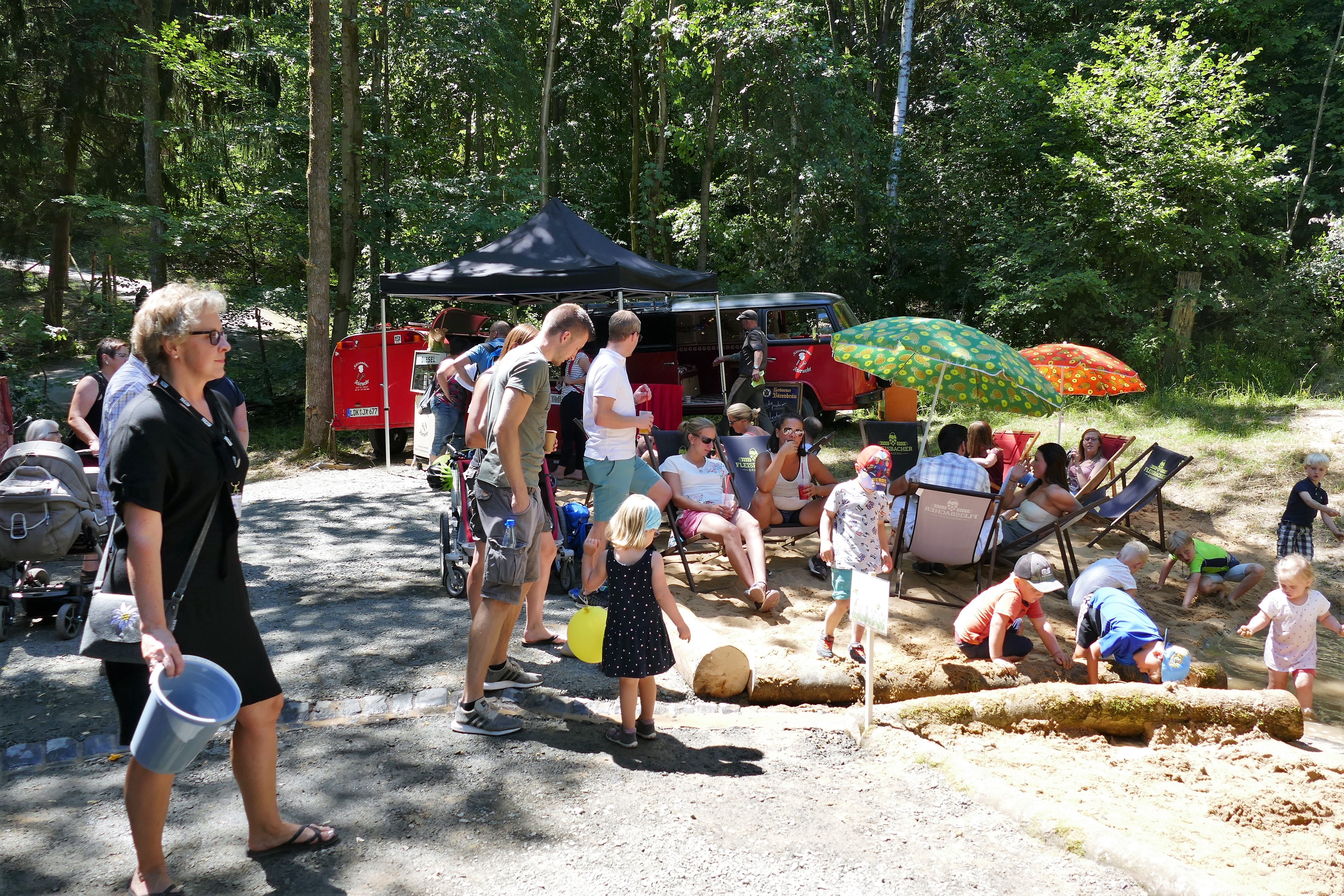 Für die Erwachsenen gibt es in diesem Jahr einen Biergarten mit Fleisbacher Bier. Leckere Cocktails laden an der Beachbar zum Verweilen ein. Aber auch für das leibliche Wohl ist mit herzhaften und süßen Speisen gesorgt.