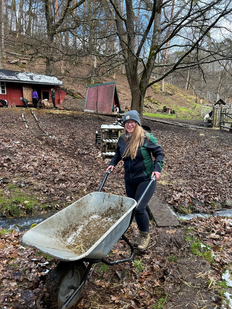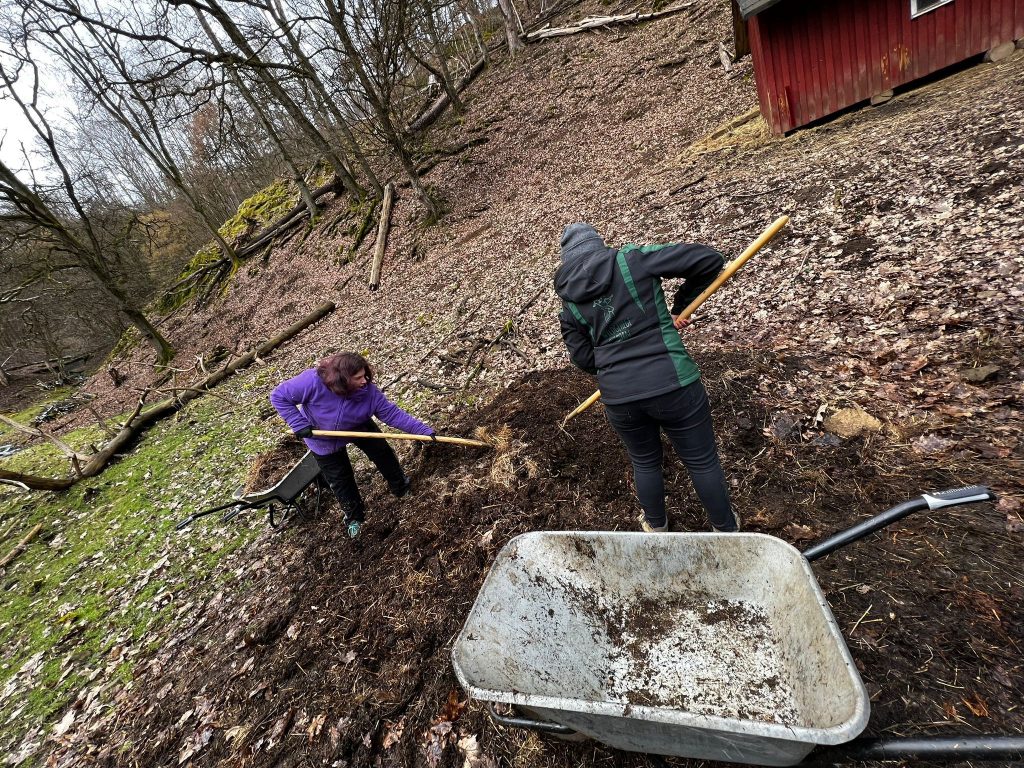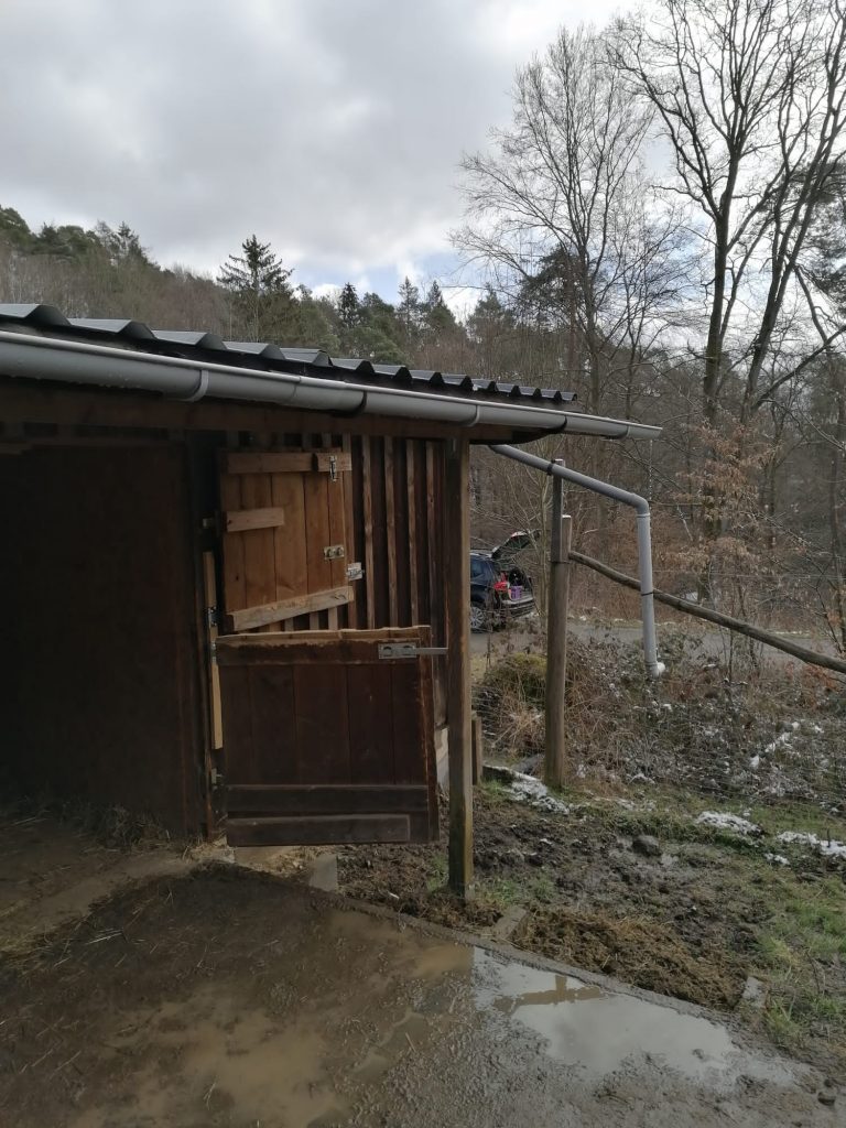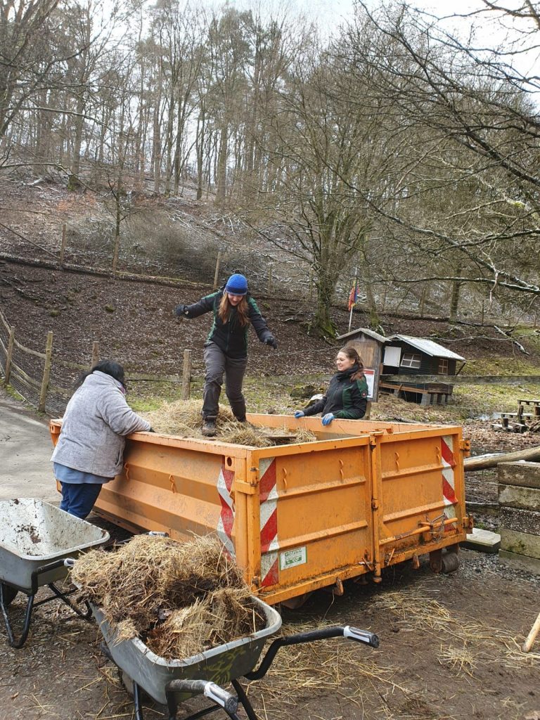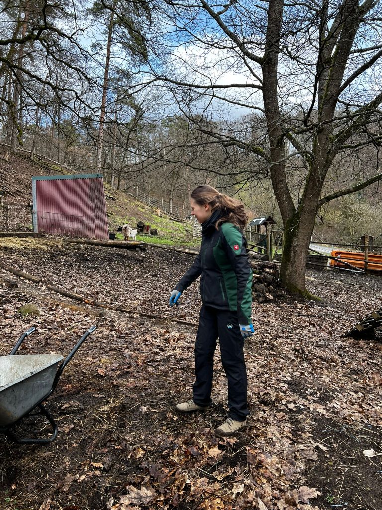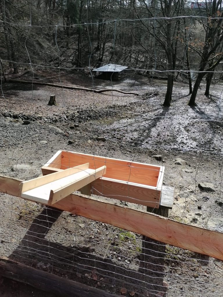 Unter anderem wurde im Ziegengehege ordentlich ausgemistet. Außerdem hat das Dammwild einen neuen Futtertrog und das Eselgehege eine neue Dachrinne am unterem Stall erhalten.